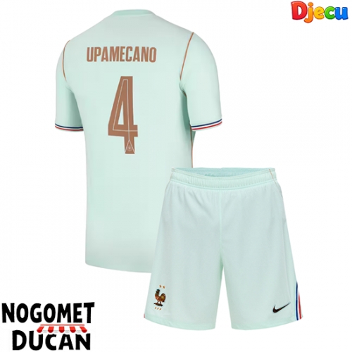 Francuska Dayot Upamecano #4 Gostujuci Dres za djecu SP 2026 Kratak Rukav (+ Kratke hlače)